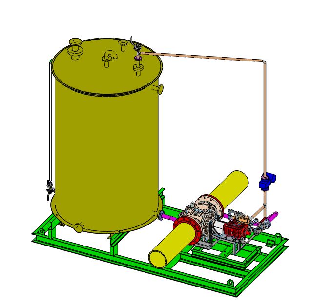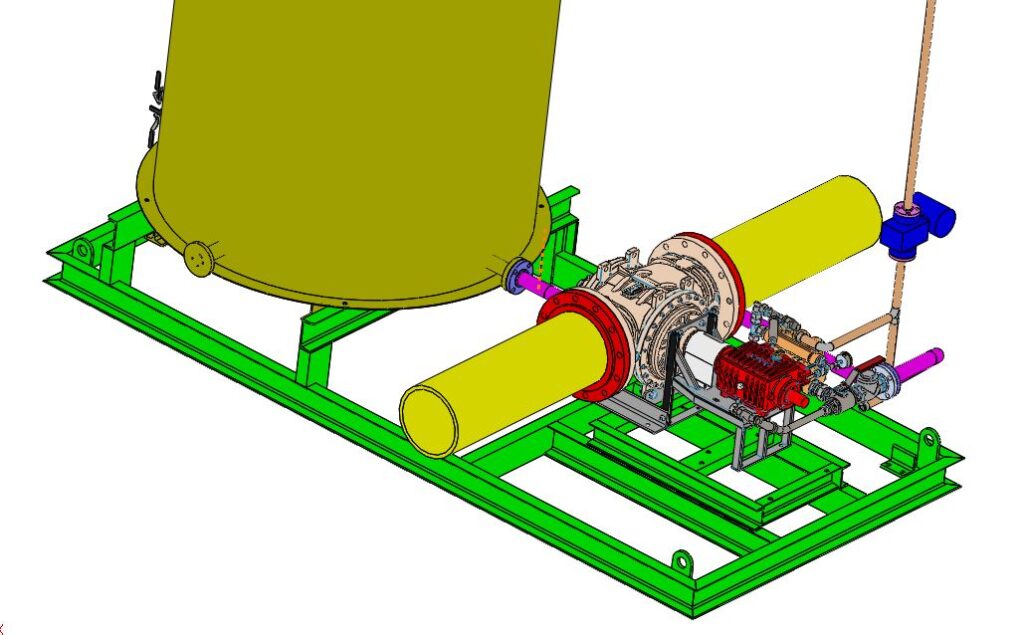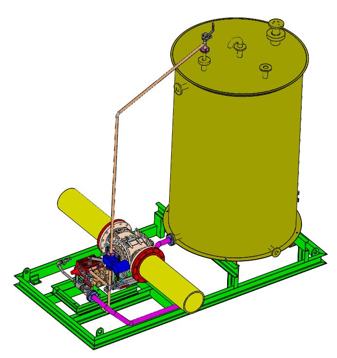 סקיד כיבוי אש כולל מיכל מי כיבוי, מערכת ברזים וצנרת בקרה.